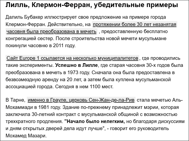Передача христианских церквей под мечети — распространённая практика во Франции. Скриншот страницы сайта sudouest.fr. Автоперевод