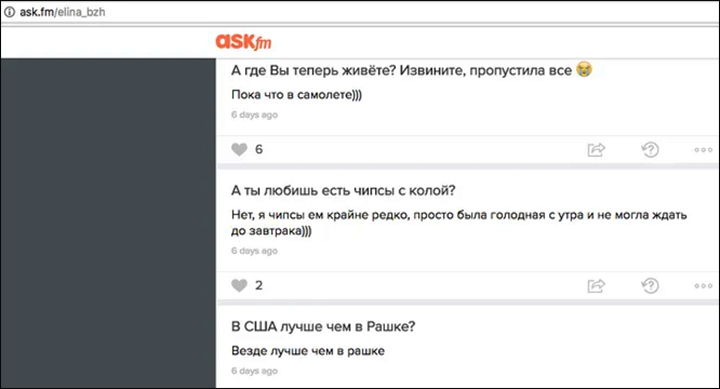 На вопрос подписчика в Ask.fm: "В США лучше, чем в Рашке?" – Элина ответила коротко и резко: