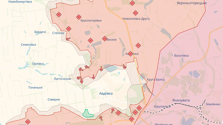 Ситуация под Авдеевкой в пятницу, 16 февраля, по данным англоязычных осинтеров. Источник: militaryland.net