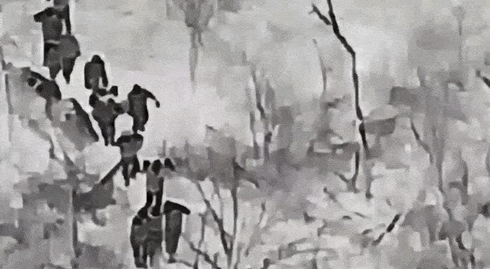 Судя по кадрам, снятым с нашего беспилотника, эта группа украинских военных сдалась по предварительной договорённости, а потому выходила организованно, неся своих раненых. Источник: ТГ-канал "Военный Обозреватель"