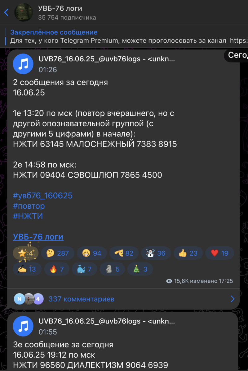 Сообщения русской радиостанции УВБ-76, известной как "Жужжалка", всегда привлекают внимание общественности и военных блогеров, которые пытаются разгадать её послания. Сегодня, 16 июня, "Радиостанция Судного дня" уже трижды вышла в эфир со странными сигналами: