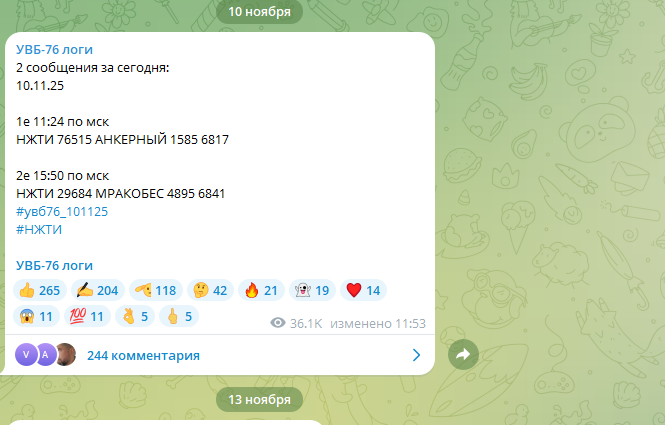 Отметим также, что УВБ-76 выдала новый сигнал после трёхдневной паузы. До этого она оживала 10 ноября: тогда в эфире прозвучало "Анкерный" и "Мракобес".