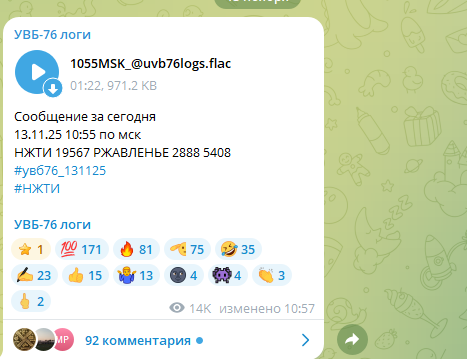 И вот сейчас в эфире "жужжалки" прозвучала шифровка, которая была передана как раз тогда, перед спецоперацией. Слово "Ржавленье", выданное сегодня в 10:55 по московскому времени, уже использовалось 19 февраля 2022 года.
