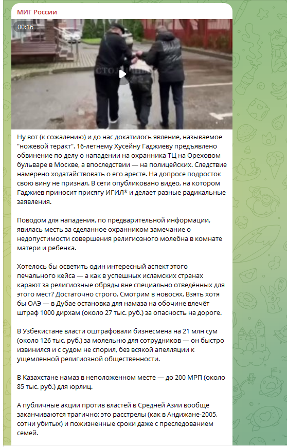 Глядя на опыт, в том числе исламских стран, России нужно жёстко пресекать любые формы проявления религиозного экстремизма, опираясь прежде всего на традиционные для нашей страны формы ислама, поощряя именно их и не давая здесь расцветать и укореняться совершенно нам чуждым, завозным практикам, которые и являются питательной почвой для социальной дестабилизации и опасного радикализма. Иначе новых "ножевых терактов" не избежать,