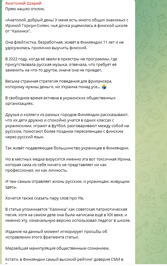 Вот поэтому попытки некоторых "особо одарённых" протащить в школу русофобию очень насторожили адекватных украинцев в Финляндии.