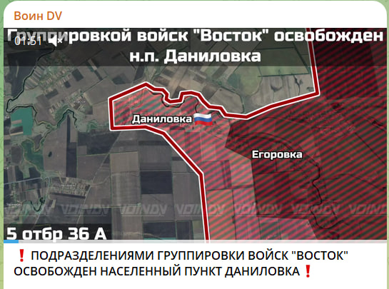 По информации канала "Воин DV", гвардейцы 5-й танковой бригады 36-й армии группировки войск "Восток" решительным сочетанием огня и манёвра выбили противника из населённого пункта Даниловка в Днепропетровской области и продвинулись на 3 км вглубь обороны противника: