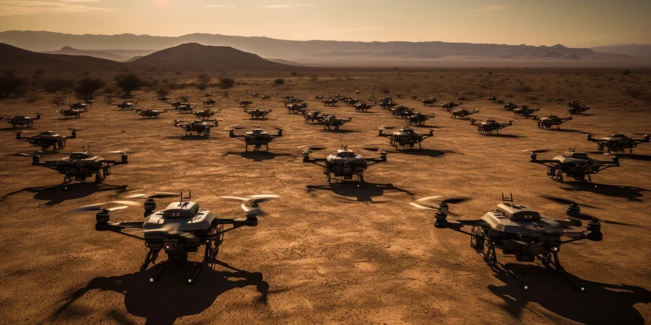 Получив сигнал о том, что в воздухе появилась цель, рой поднимается и летит на перехват. При этом утверждается, что управляет беспилотниками система на основе искусственного интеллекта.