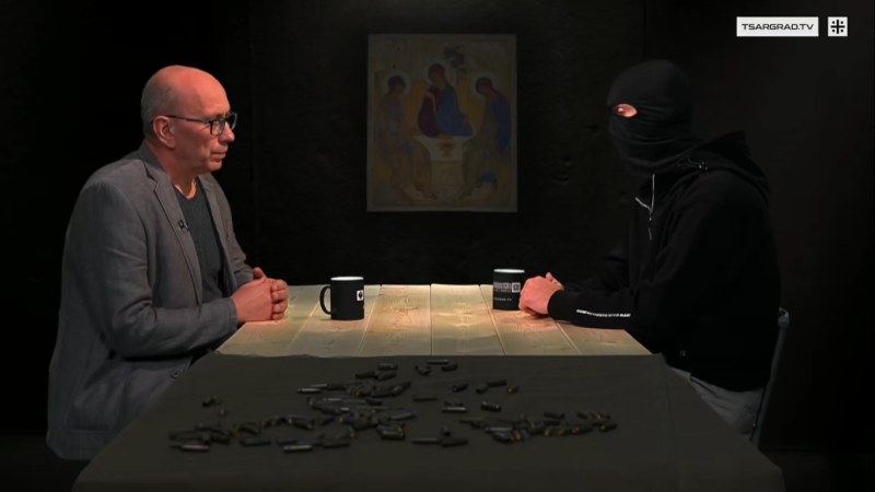 Журналист "Первого русского", ведущий программы Александр Орлов отметил, что этот факт, безусловно, свидетельствует о бесстрашии бойца. Он поинтересовался, почему в таком случае гость студии Царьграда предпочёл появиться в кадре в балаклаве.