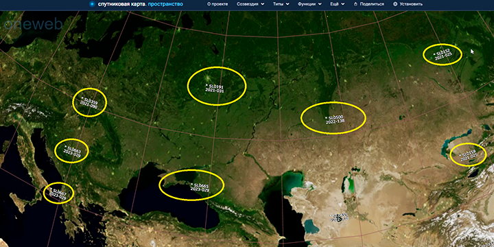 Вот так выглядит карта покрытия спутниками OneWeb над территориями Европы и России в моменте//Скриншот страницы сайта satellitemap.space