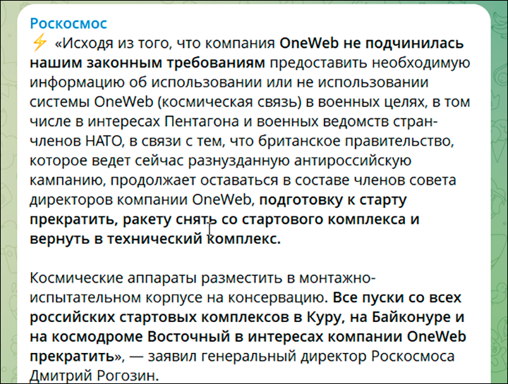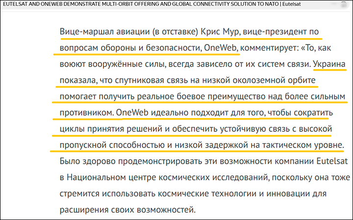 Собственно, никто и не скрывает вовлечённости спутников OneWeb и Eutelsat в войну с Россией: