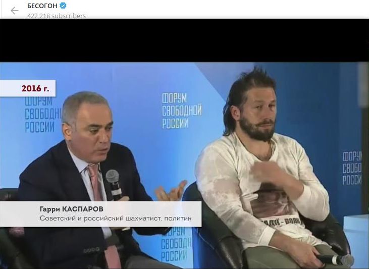 Гарри Каспаров** (слева) и Евгений Чичваркин**, 2016. Скриншот: телеграм-канал "Бесогон".
