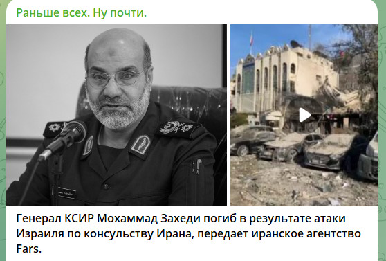 Семеро погибших - иранские военные из КСИР, трое - граждане Сирии, ещё один - ливанец. Посольство - территория Ирана. То есть Израиль открыто атаковал Иран. Теперь дело за Ираном. Какой будет ответка? Пока есть только заявления: