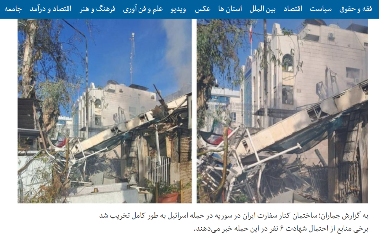 Вечером 1 апреля в Дамаске было разрушено здание консульства Ирана. При атаке погибли шесть человек (в ряде источников - 8). По версии экспертов, то, что совершил Израиль, - это больше, чем просто переход за черту, фактически еврейская сторона вызывает Тегеран на сражение.
