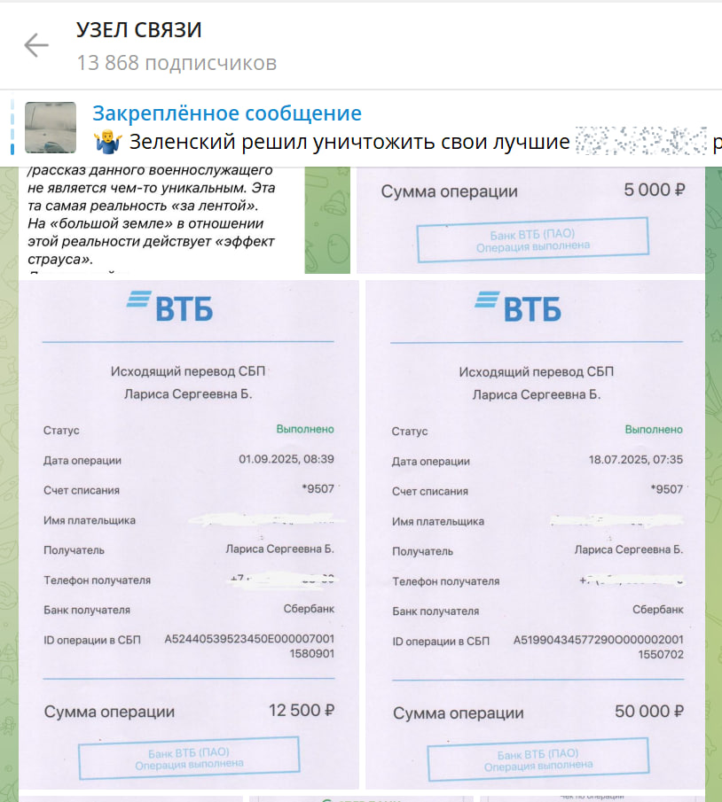 - указали авторы канала, прикрепив чеки о крупных переводах в онлайн-банках.