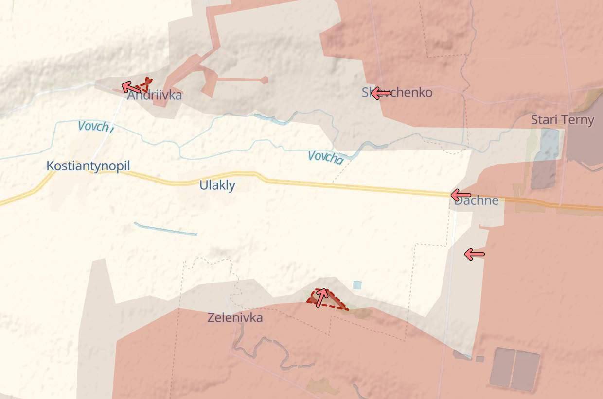- Восточнее Зеленовки штурмовые подразделения продвинулись в направлении Улаклы в посадках севернее балки.
