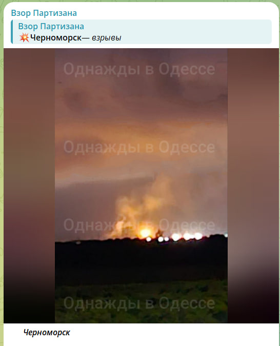 Источники сообщали о работе тактической авиации, пусках корректируемых авиабомб, крылатых ракет и беспилотников. В Киеве и Харькове были слышны сильные взрывы - последствия прилёта, в Черноморске сильный пожар. Фото: СКРИНШОТ//T.ME/EYES_PARTIZAN